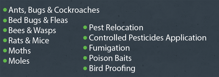 - Treatment of Cockroaches, Fleas and Bed Bugs.